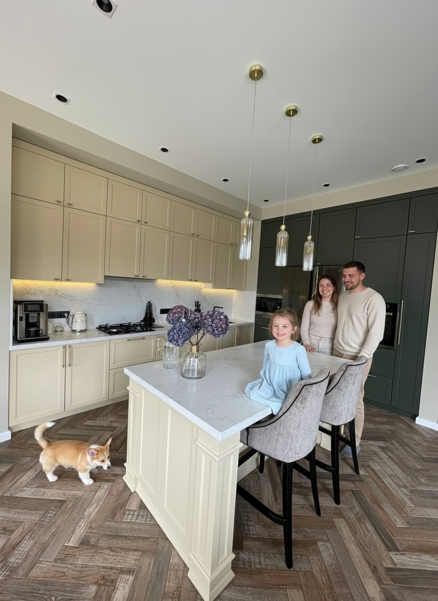 Мы вложили душу в этот проект, и теперь эта кухня — настоящее украшение дома. Мечта хозяйки, где всё на своём месте.
