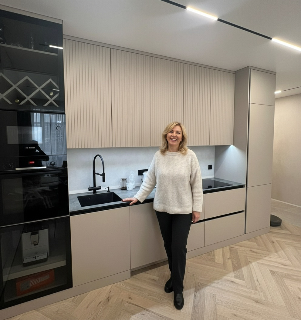 Юлия довольна своей кухней, а мы рады, что всё задуманное получилось реализовать в нашем проекте!